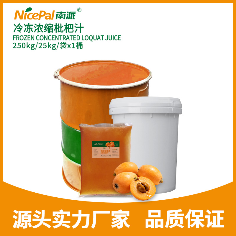 海南南派冷冻浓缩枇杷汁采用当季的新鲜枇杷,在洁净的环境下榨汁,利用独特的生产工艺进行6倍浓缩后,并在-38℃快速急冻后在-18℃下冷冻,有效保留了枇杷新鲜风味和营养成分。