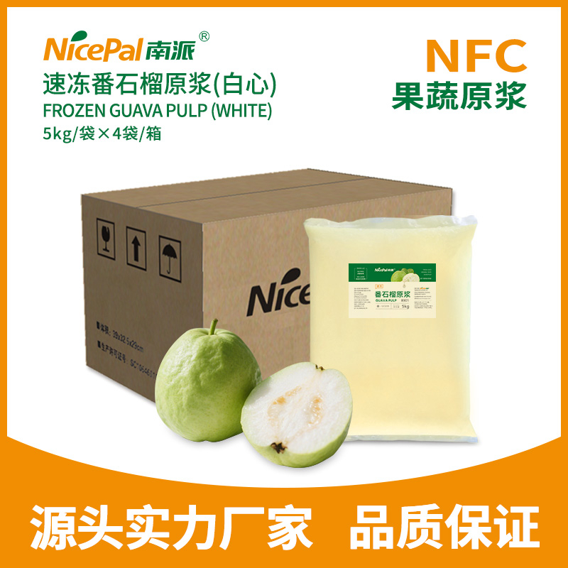 海南南派速冻番石榴原浆(白心)采用当季的新鲜番石榴(白心),在洁净的环境下榨汁制浆,并在-38℃快速急冻后在-18℃下冷冻,从榨汁到速冻,整个过程在30分钟内完成,有效保留了番石榴(白心)的新鲜风味和营养成分。
