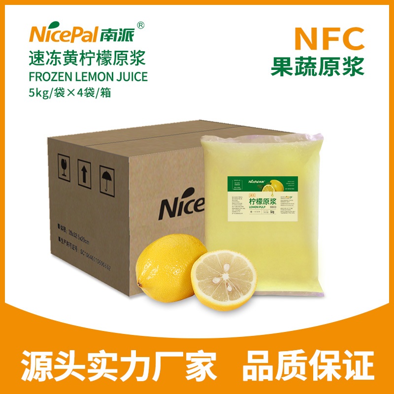 海南南派速冻黄柠檬原浆采用当季的新鲜黄柠檬,在洁净的环境下榨汁制浆,并在-38℃快速急冻后在-18℃下冷冻,从榨汁到速冻,整个过程在30分钟内完成,有效保留了黄柠檬的新鲜风味和营养成分。