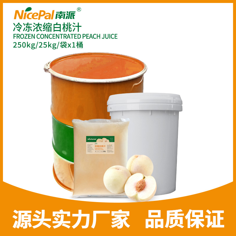 南派冷冻浓缩白桃汁 Nicepal Frozen Concentrated Peach Juice海南南派冷冻浓缩白桃汁采用当季的新鲜白桃,在洁净的环境下榨汁,利用独特的生产工艺进行6倍浓缩后,并在-38℃快速急冻后在-18℃下冷冻,有效保留了白桃的新鲜风味和营养成分。