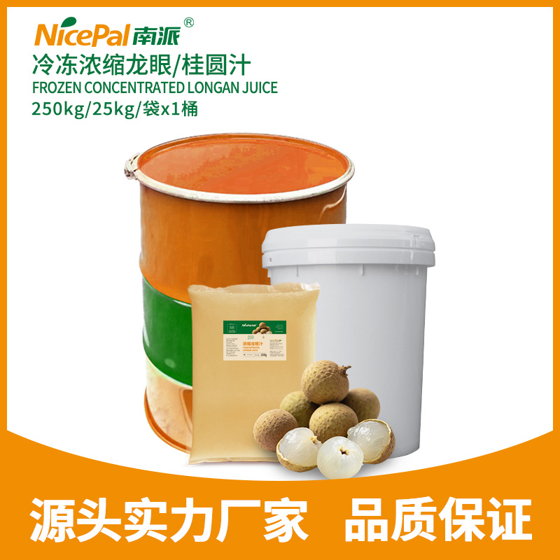 南派冷冻浓缩龙眼/桂圆汁采用当季的新鲜龙眼/桂圆,在洁净的环境下榨汁,利用独特的生产工艺进行6倍浓缩后,并在-38℃快速急冻后在-18℃下冷冻,有效保留了龙眼/桂圆新鲜风味和营养成分。