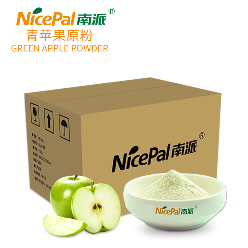 海南南派青苹果原粉选用新鲜青苹果不加水直接制成鲜浆,经先进的喷雾干燥工艺精制而成,有效保留了青苹果的营养成分和原始风味,即时溶解,使用方便。