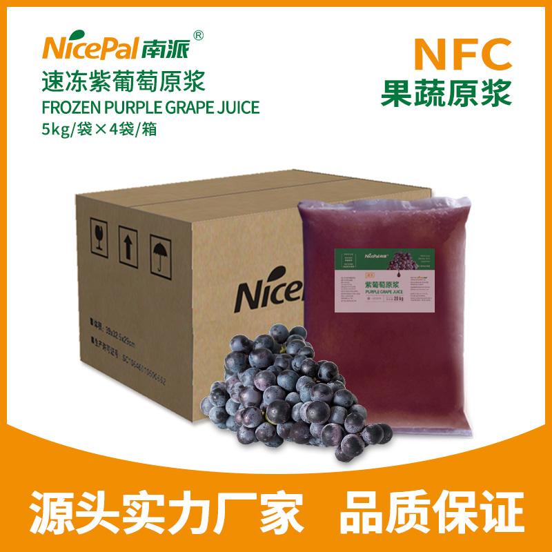 海南南派速冻紫葡萄原浆采用当季的新鲜紫葡萄,在洁净的环境下榨汁制浆,并在-38℃快速急冻后在-18℃下冷冻,从榨汁到速冻,整个过程在30分钟内完成,有效保留了紫葡萄的新鲜风味和营养成分。