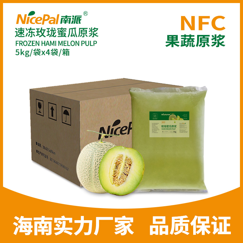 海南南派速冻玫珑蜜瓜原浆采用当季的新鲜玫珑蜜瓜,在洁净的环境下榨汁制浆,并在-38℃快速急冻后在-18℃下冷冻,从榨汁到速冻,整个过程在30分钟内完成,有效保留了玫珑蜜瓜的新鲜风味和营养成分。